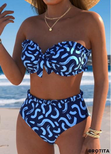 Heim > Bademode > Bikinis > Bikini-Sets/ Rotita – Marineblaues Bikini-Set mit mittelhohem Bund und Graffiti-Print