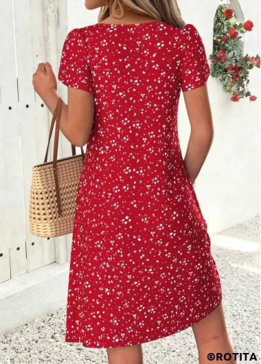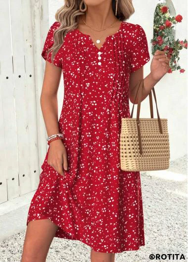 Neu in kurzes Kleid von Rotita mit kleinem Blumenmuster und Abnähern