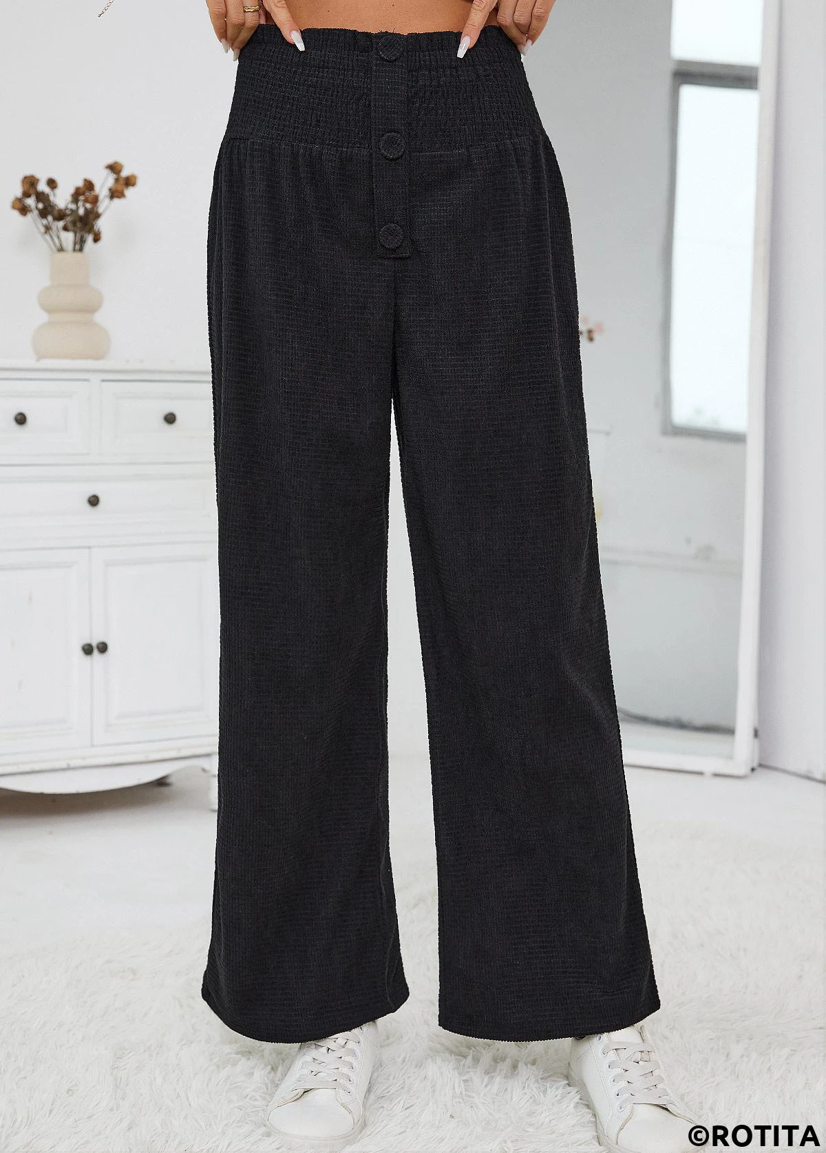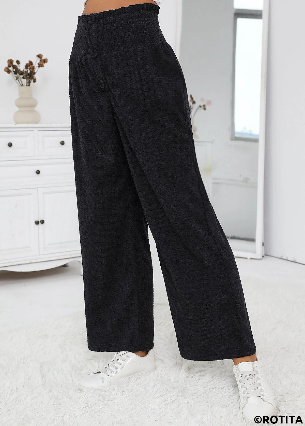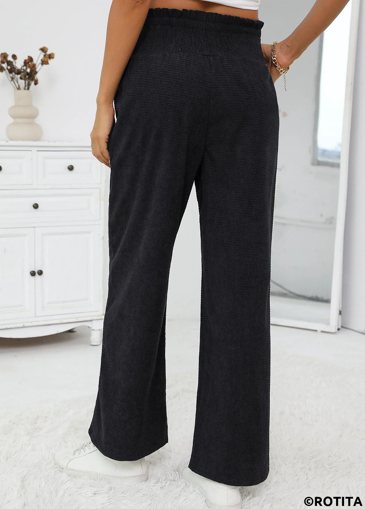 Heim > Unterteile > Hose/ schwarze Hose mit weitem Bein und hoher Taille und elastischem Bund