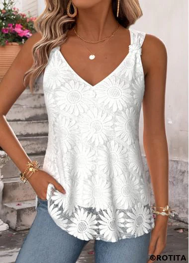 Rotita mehrlagiges weißes Tanktop mit V-Ausschnitt und Trägern