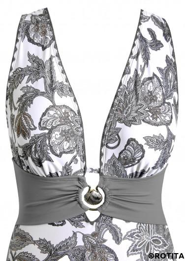 Verkauf Rotita Patchwork Hellgrau Tribal Print Einteiler Bademode