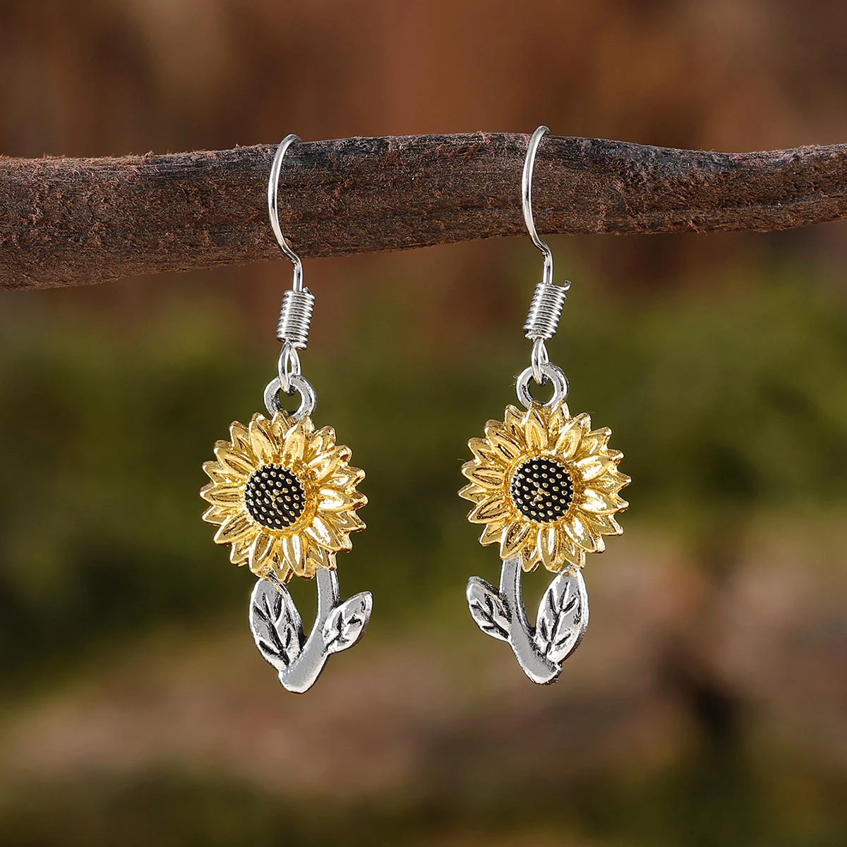Sonnenblumenohrringe mit silberfarbener Legierung