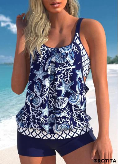 Heim > Bademode > Tankinis > Tankini-Tops/ Marineblaues Tankini-Oberteil mit Cut-Outs von Rotita mit Animal-Print-Kein Boden