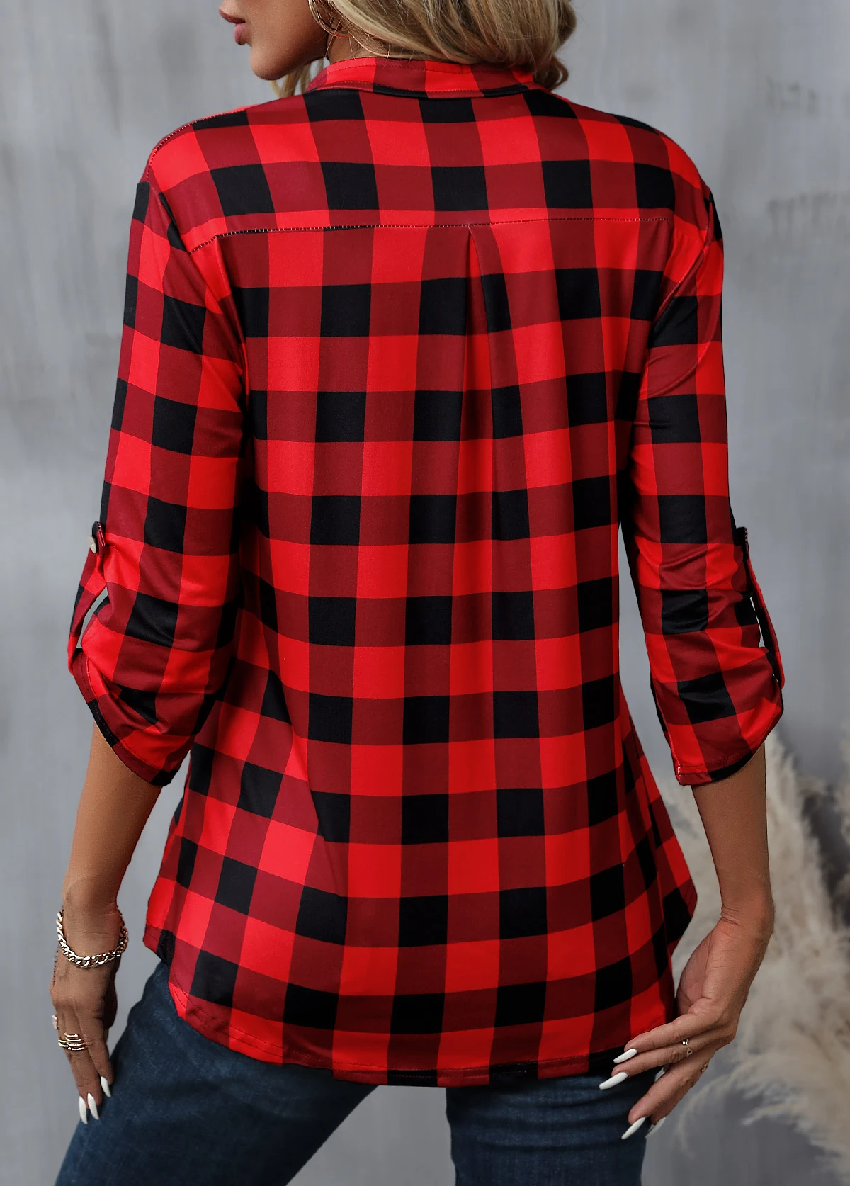 Heim > Oberteile > Blusen/ Rotita-Langarmbluse mit Reißverschluss und Karomuster in Rot