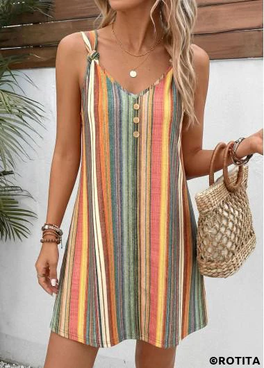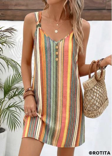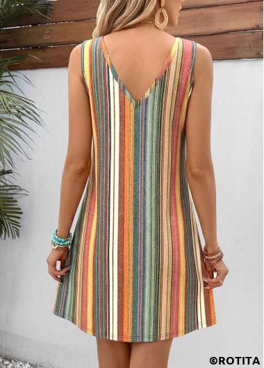 Heim > Kleider/ Rotita mehrfarbig gestreiftes kurzes trägerloses Kleid mit V-Ausschnitt