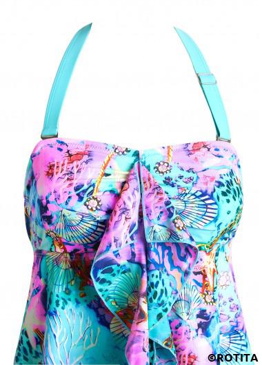 Tauchen Sie mit diesem Tankini-Set mit Meeresmotiven in die Meeresatmosphäre ein! Es besteht aus einem trägerlosen Bandeau-Oberteil und einer bequemen Hose im Shorts-Stil und ist die perfekte Mischung aus Mode und Energie. Ideal für alle die einen verspielten und doch schicken Strand-Look lieben.