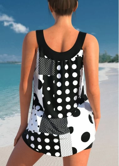 Heim > Bademode > Tankinis > Tankini-Tops/ Rotita-Tankini-Oberteil mit geometrischem Print und Punkten in Schwarz-Kein Boden