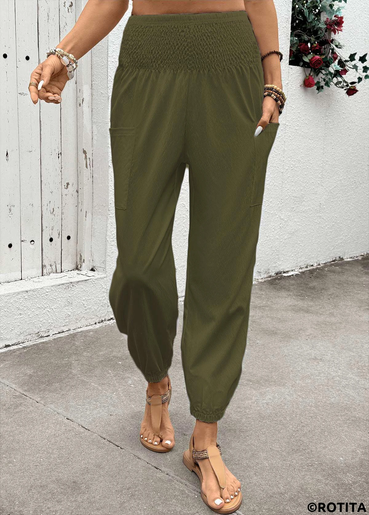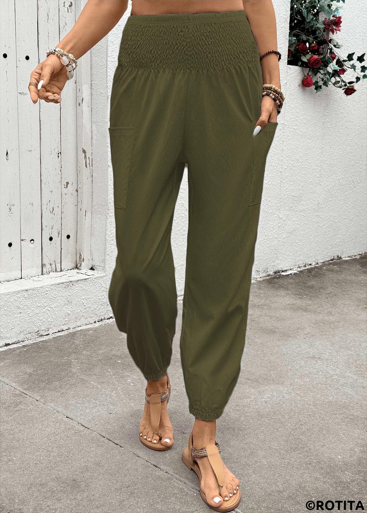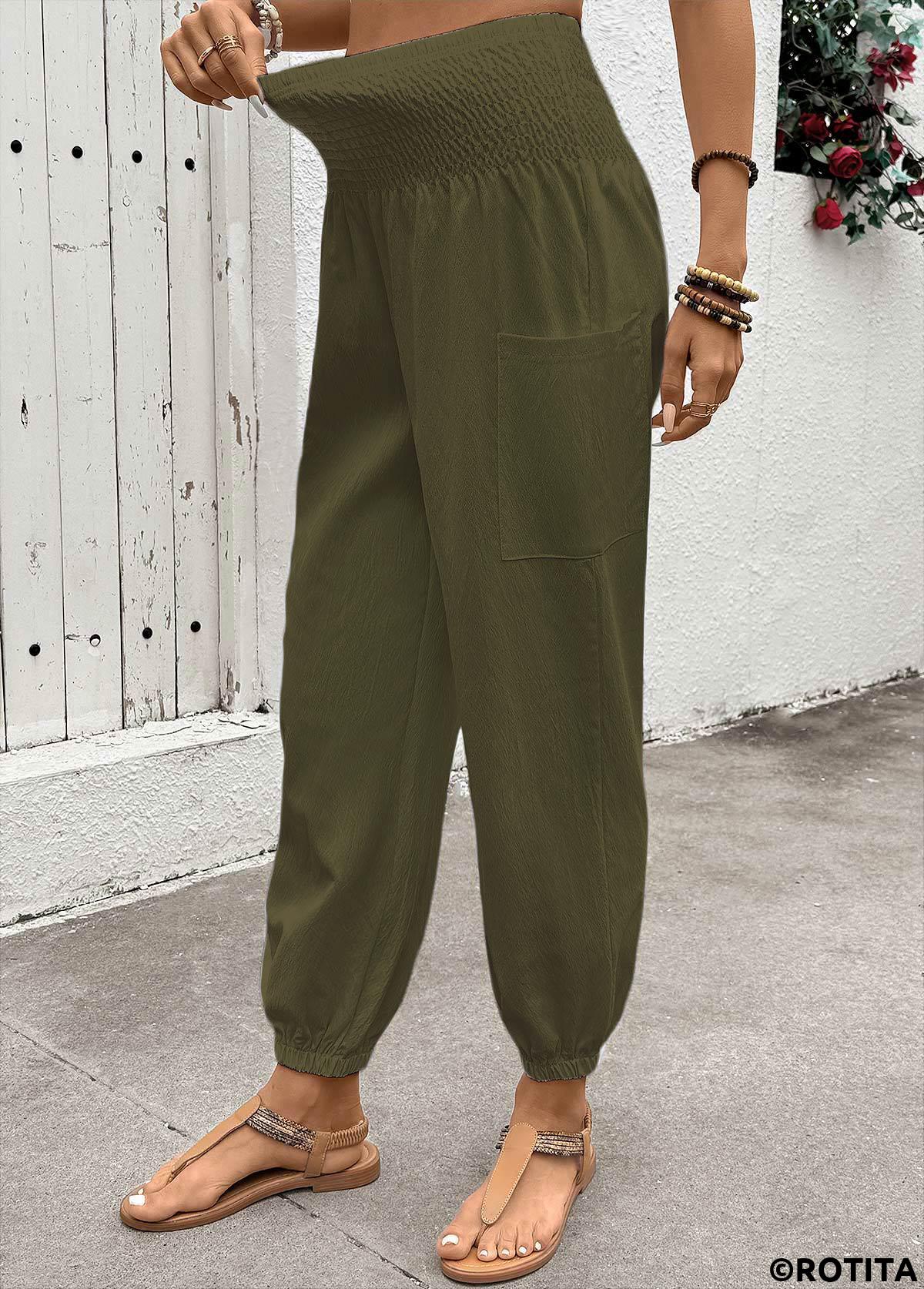 Heim > Unterteile > Hose/ Weiche olivgrüne Jogginghose mit elastischem Bund und hohem Bund