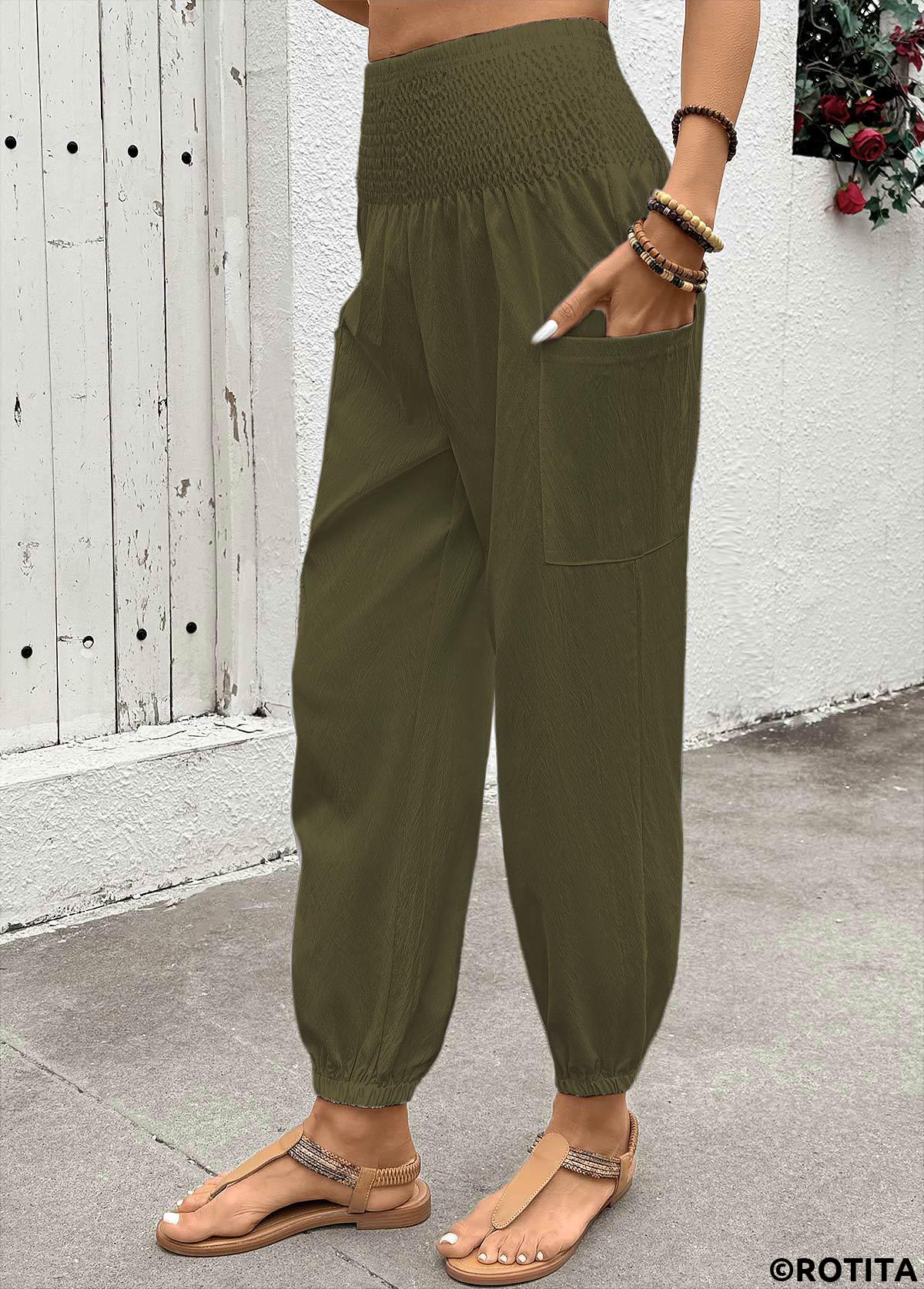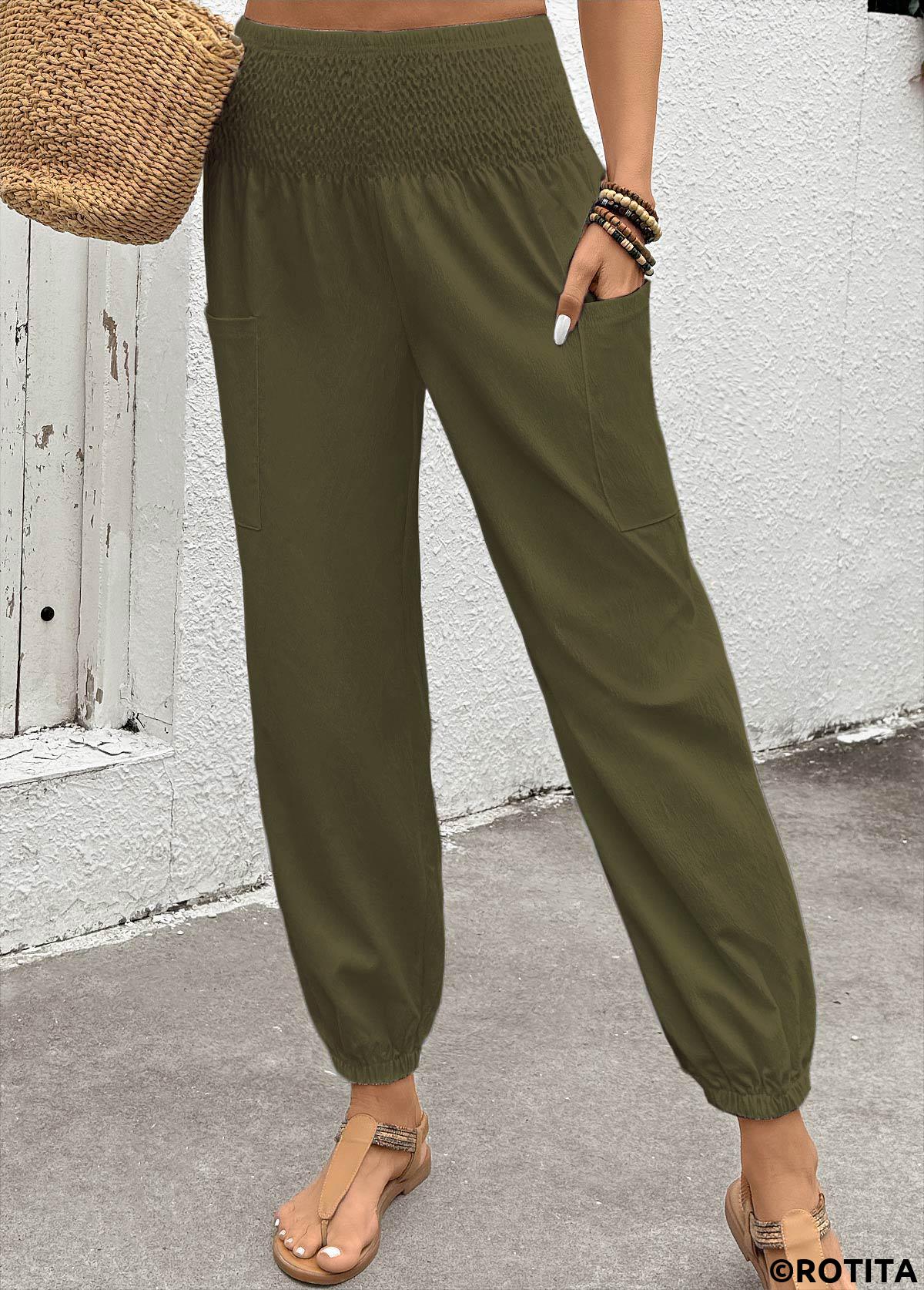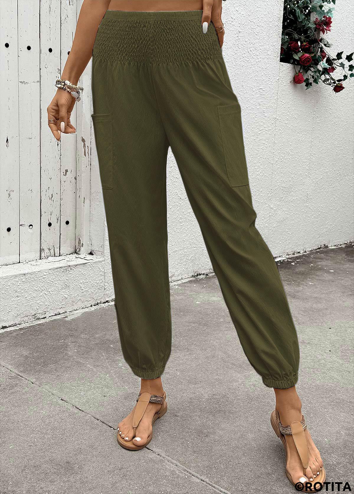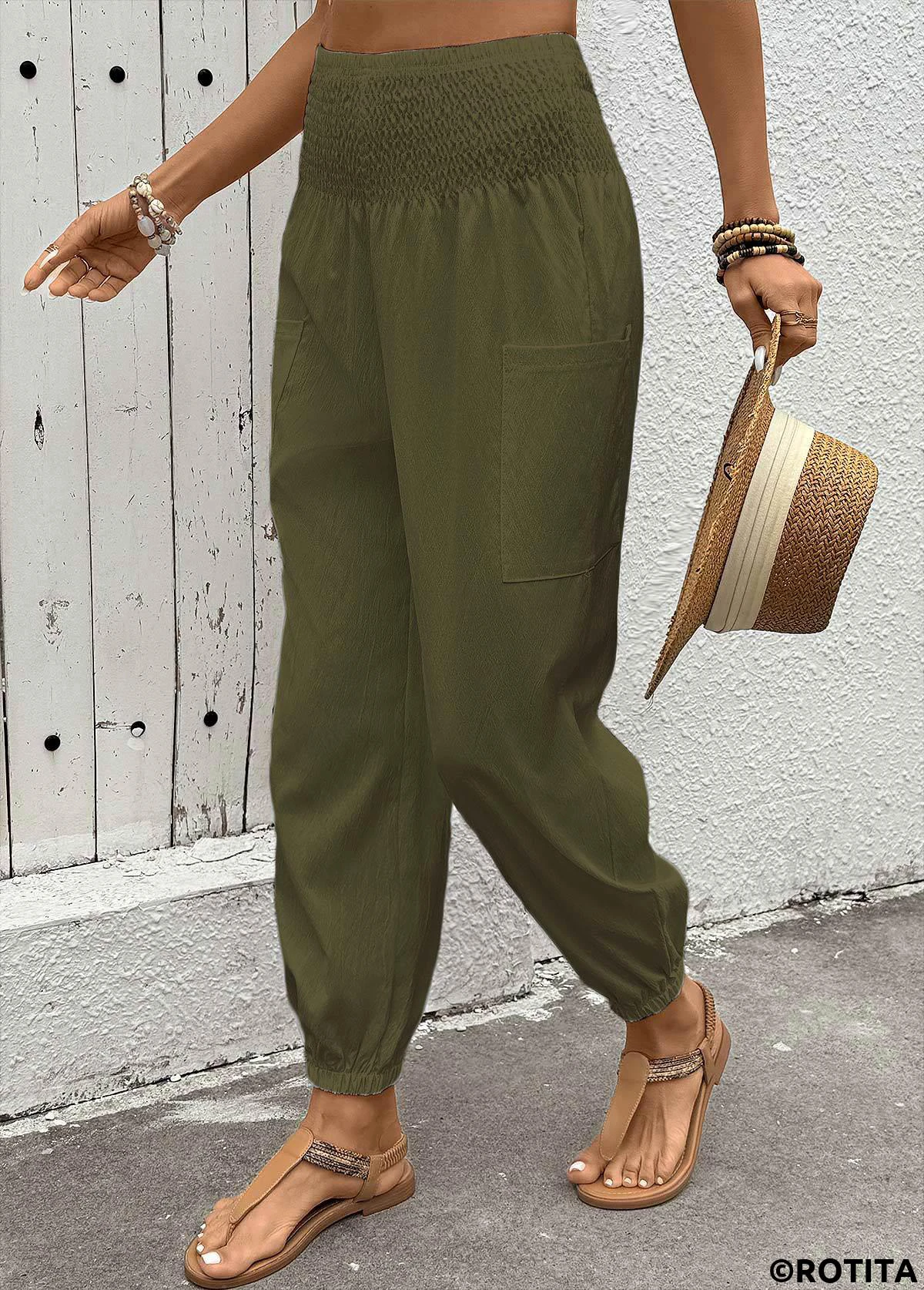 Heim > Unterteile > Hose/ Weiche olivgrüne Jogginghose mit elastischem Bund und hohem Bund