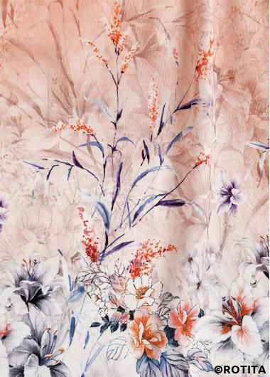T-Shirt mit Blumendruck und Schlitzkragen in Altrosa mit Rotita-Knopf