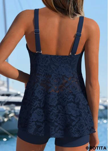 Heim > Bademode > Tankinis > Tankini-Sets/ Tankini-Set mit Rotita-Bauchbedeckung marineblauem Tropenpflanzenmuster