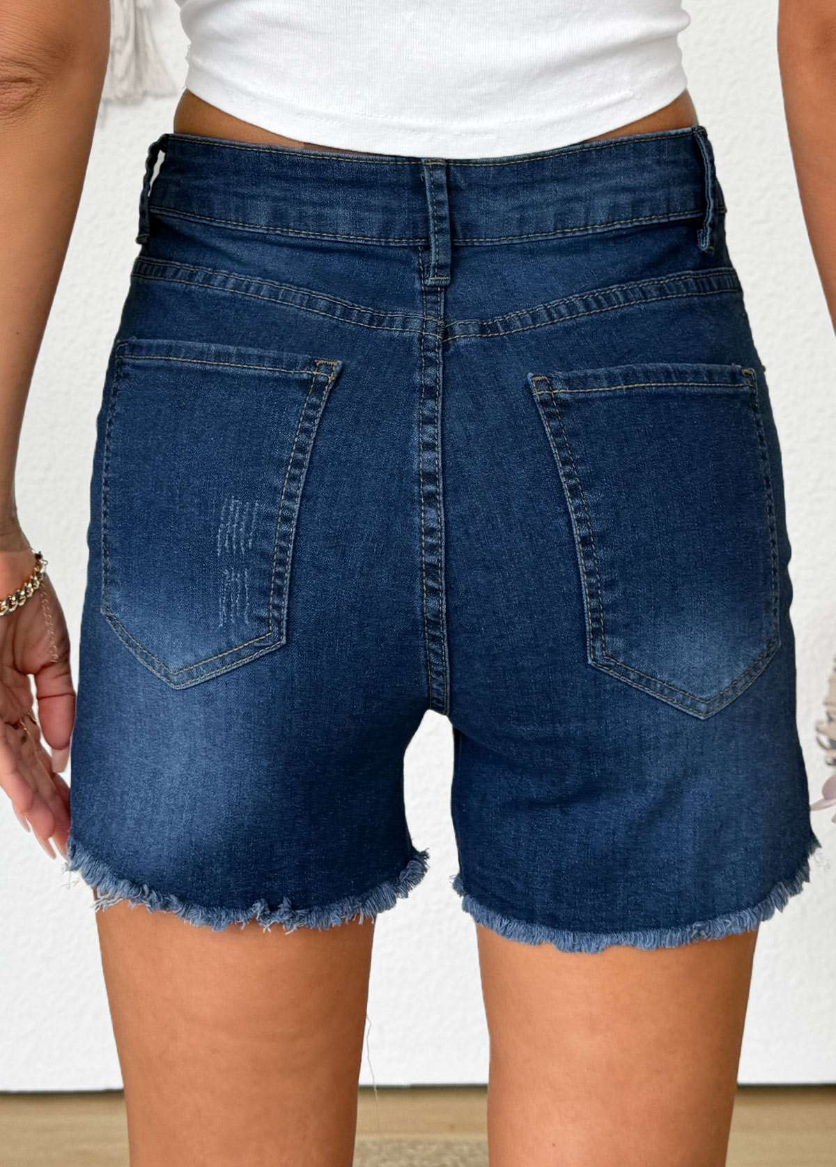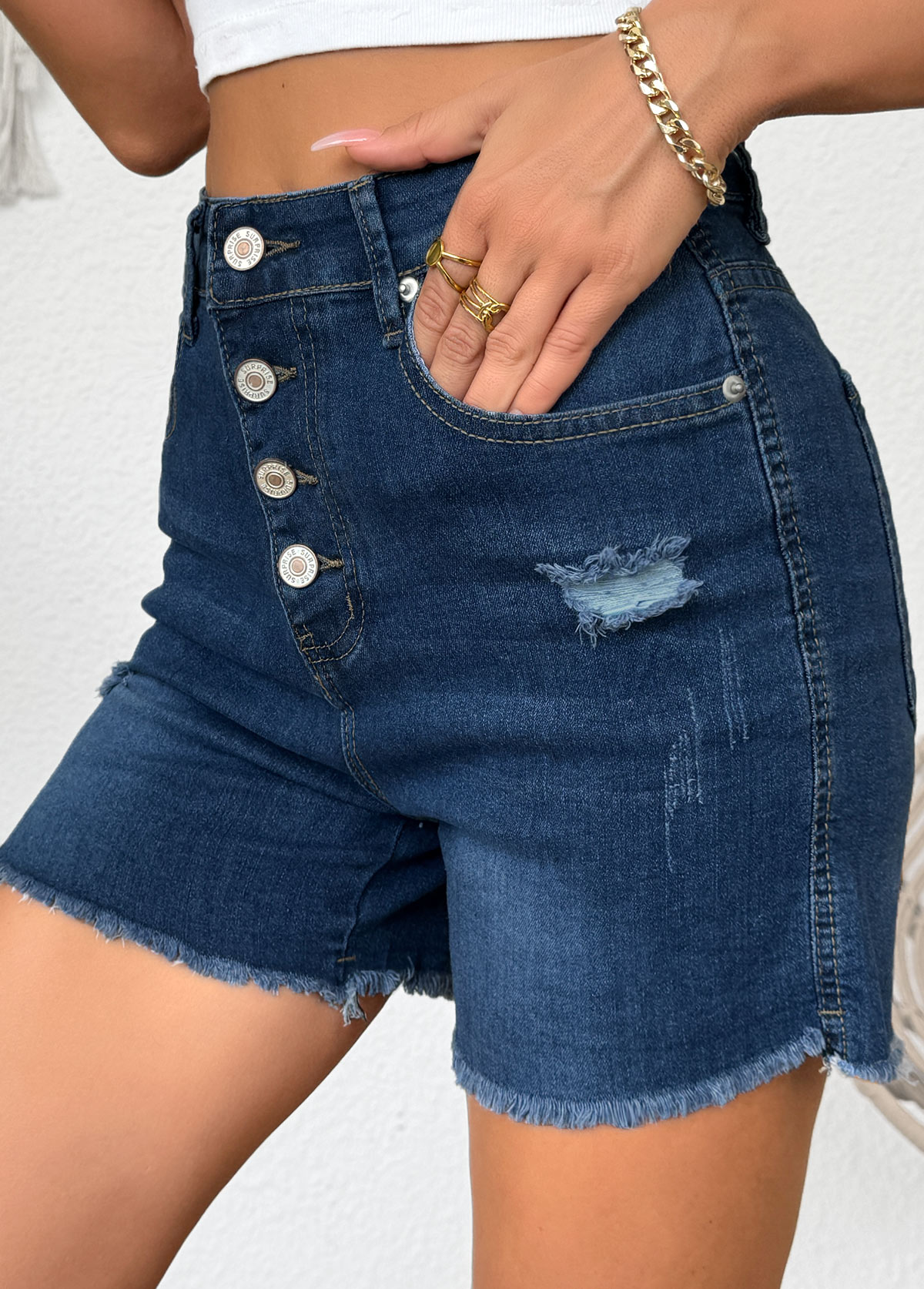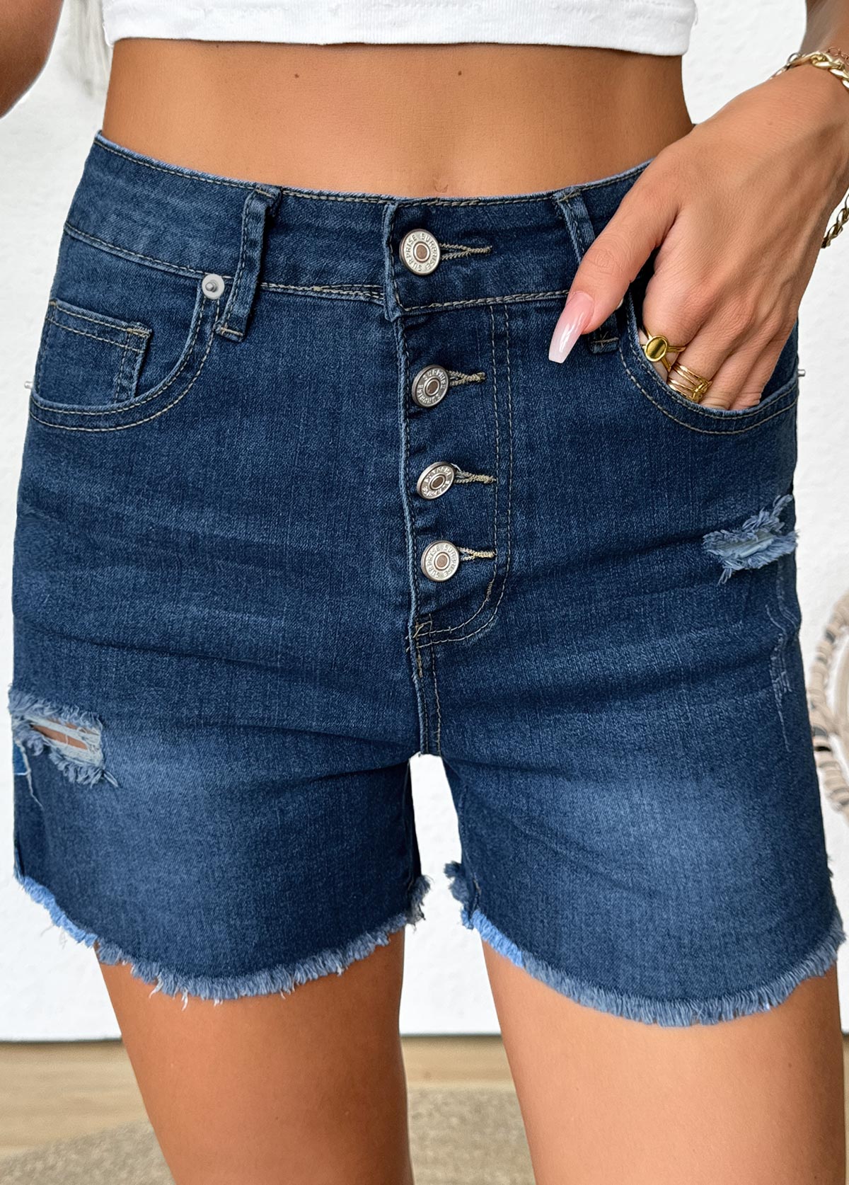 Home > Bottoms > Denim&Jeans/ Denim Blue Button Fly High Waisted Denim Shorts