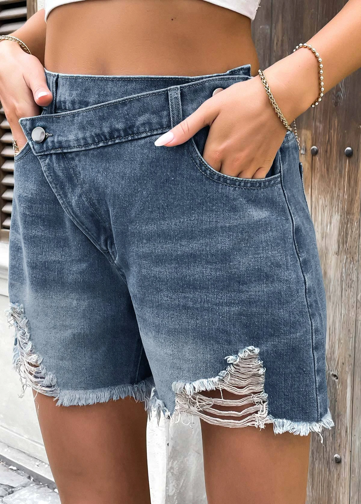 Home > Bottoms > Denim&Jeans/ Denim Blue Button Fly High Waisted Shorts