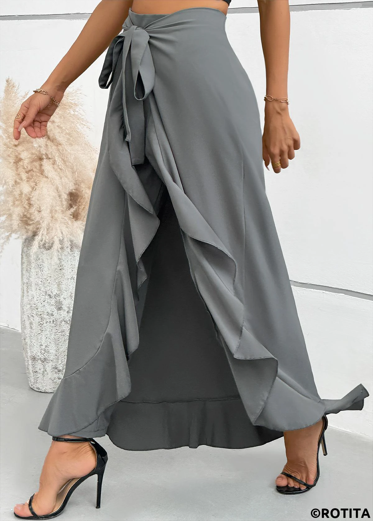 Sale Grey Wide Leg Elastic Waist Mid Waisted Pants