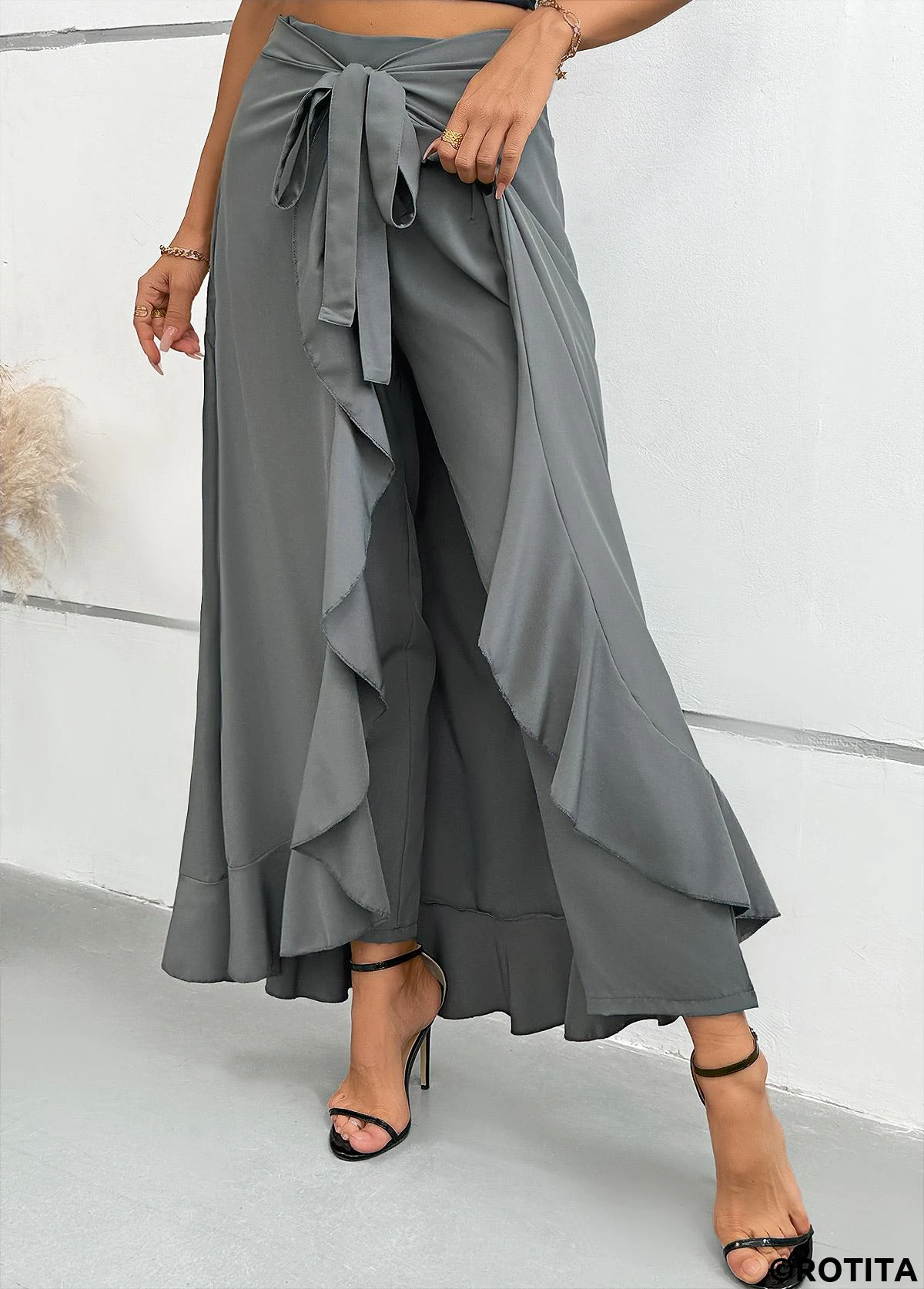 Home > Bottoms > Pants/ Grey Wide Leg Elastic Waist Mid Waisted Pants