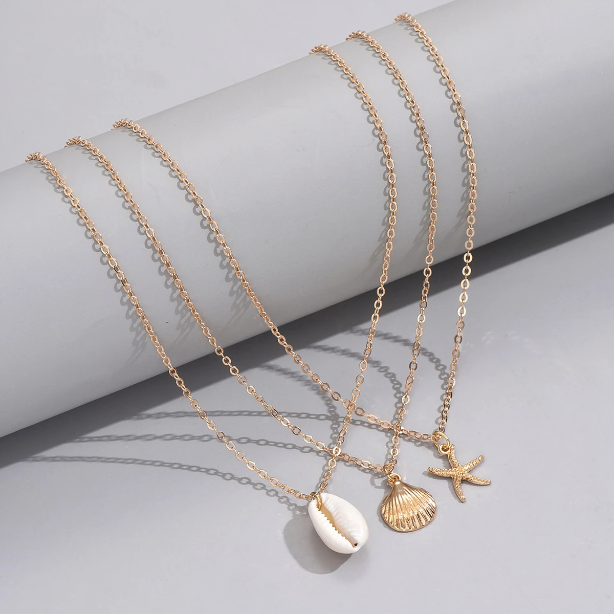Home > Jewelry > Necklaces & Pendants/ Layered Shell Golden Alloy Necklace Set