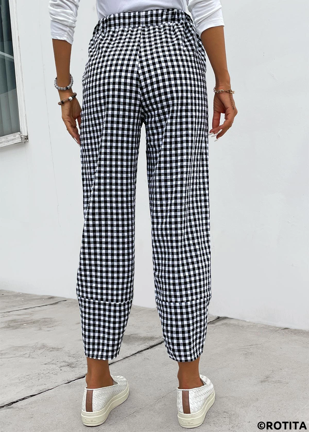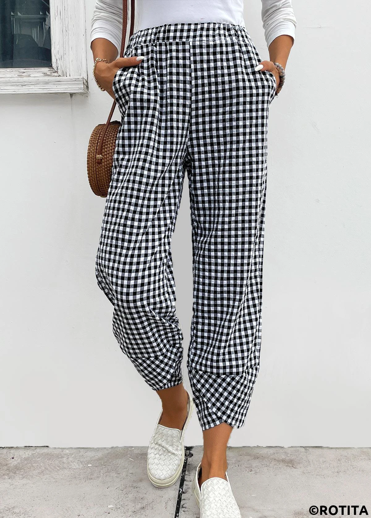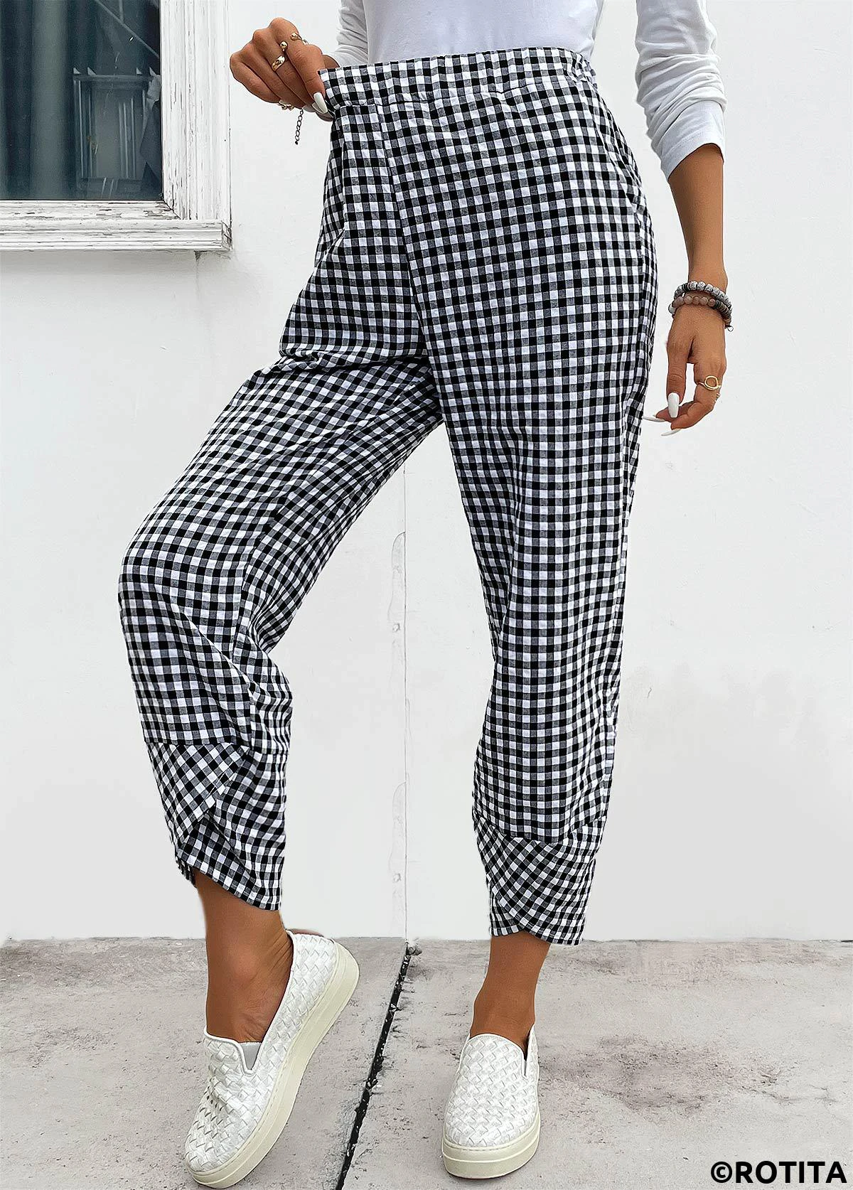 Home > Bottoms > Pants/ Plaid Black Elastic Waist High Waisted Pants
