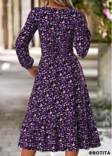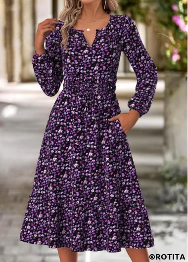 Home > Dresses/ ROTITA Double Side Pockets Ditsy Floral Print Purple Dress