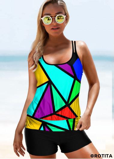 > Swimwear > Tankinis > Tankini Sets/ ROTITA Double Straps Geometric Print Tankini Set