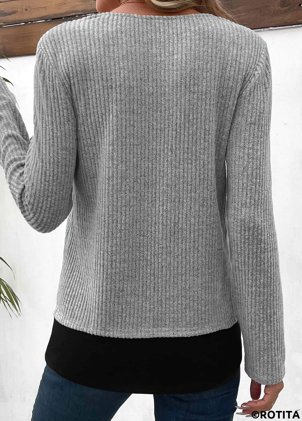 Home > Tops > Blouses/ ROTITA Light Grey Marl Round Neck Fake Two Piece Twinset