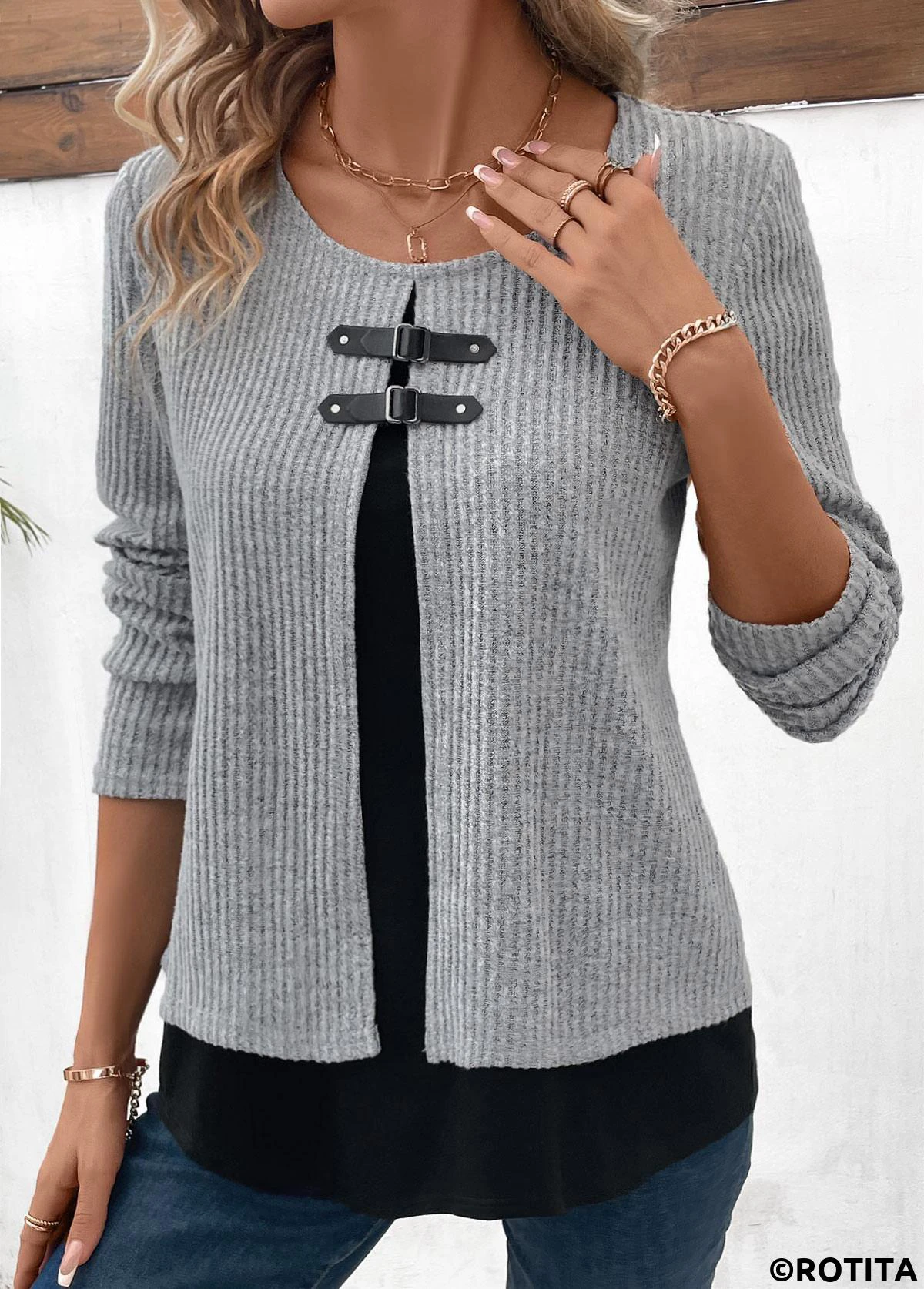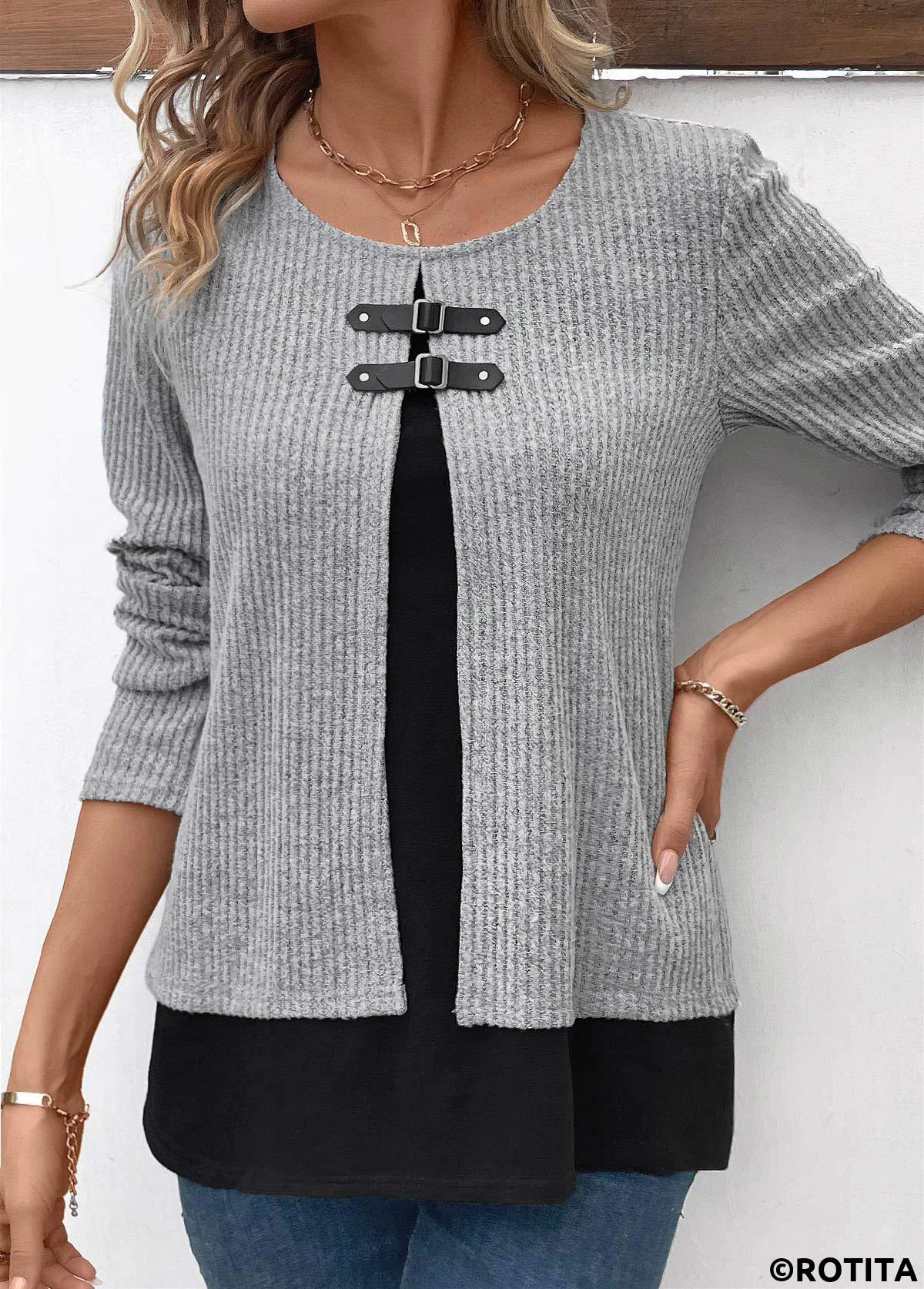 Sale ROTITA Light Grey Marl Round Neck Fake Two Piece Twinset