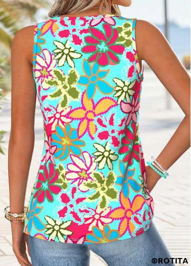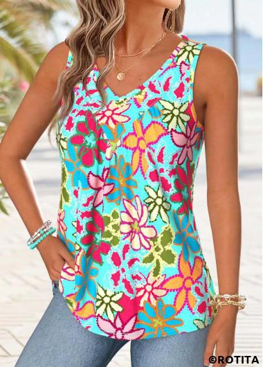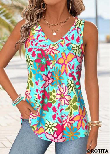 Home > Tops > Tank Tops & Camis/ ROTITA Patchwork Floral Print Multi Color V Neck Tank Top