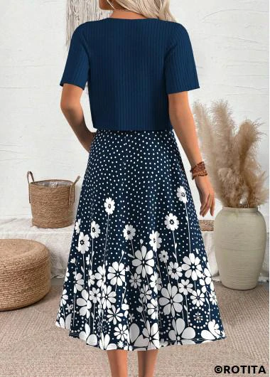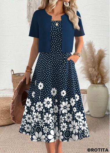 Flash Sale ROTITA Polka Dot Navy Round Neck Dress and Cardigan