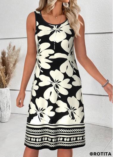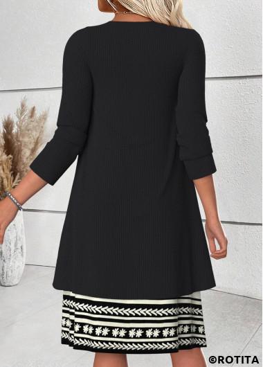 Home > Dresses/ ROTITA Tummy Coverage Floral Print Black Dress and Cardigan