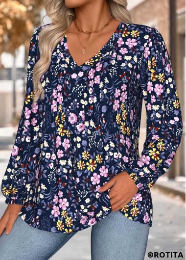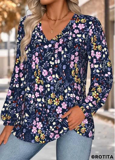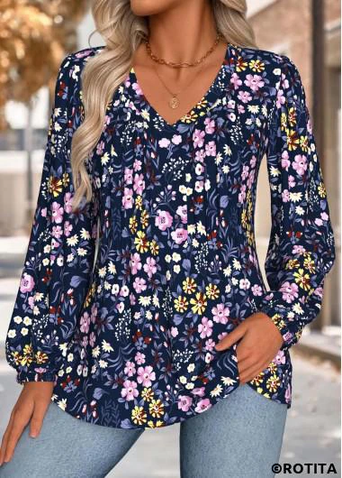 Home > Tops > Blouses/ ROTITA Tummy Coverage Floral Print Navy V Neck Blouse