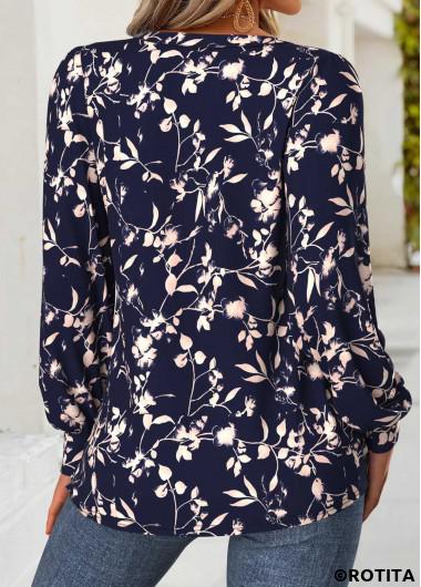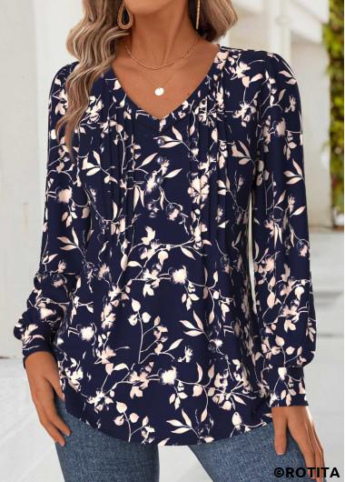 Home > Tops > Tees&T-shirts/ ROTITA Tummy Coverage Floral Print Navy V Neck T Shirt