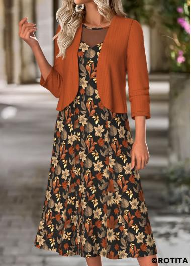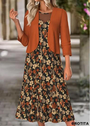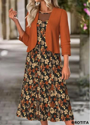 Home > Dresses/ ROTITA Tummy Coverage Floral Print Terracotta Dress and Cardigan