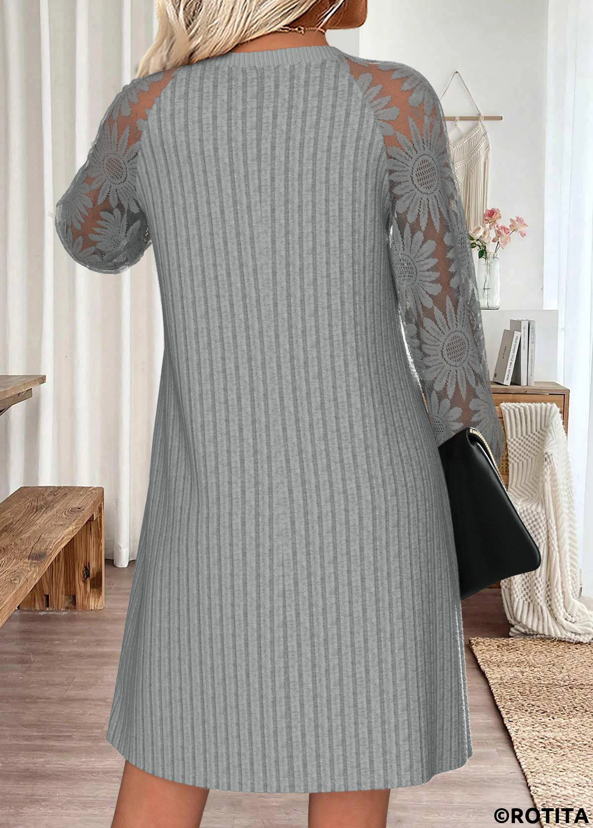 Sale ROTITA Tummy Coverage Light Grey Short Round Neck Dress