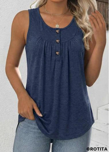 Home > Tops > Tank Tops & Camis/ ROTITA Tummy Coverage Navy Round Neck Sleeveless Tank Top