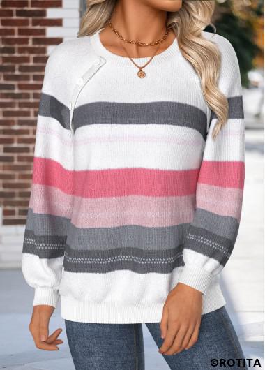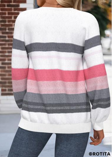 New In ROTITA Tummy Coverage Striped Raw White Round Neck Sweatshirt