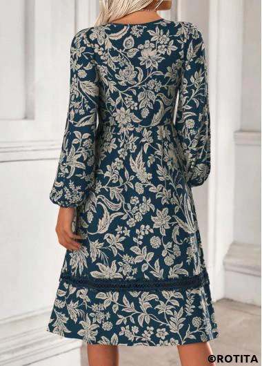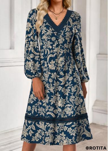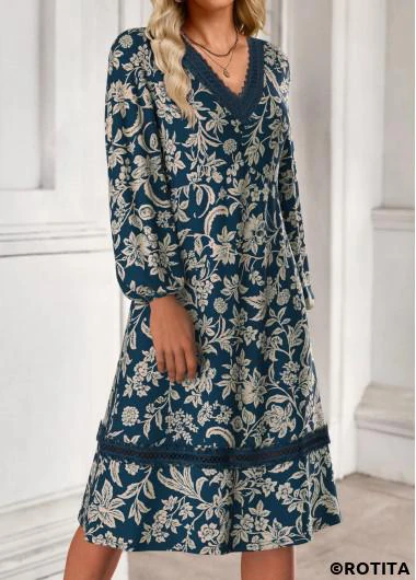 Home > Dresses/ ROTITA Tummy Coverage Tribal Print Blue V Neck Dress