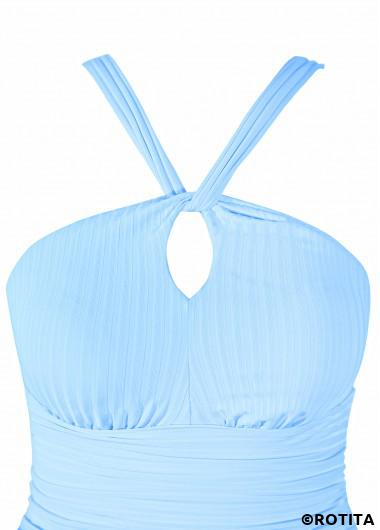 Maison > Maillots de bain > Tankinis > Ensembles Tankini/ Ensemble tankini à imprimé plantes tropicales bleu clair découpées Rotita