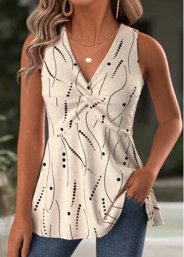 Débardeur à col en V à pois froncés couleur café clair Rotita