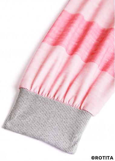 Vente flash sweat-shirt à manches longues à col fendu rayé patchwork rose rotita
