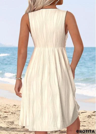 Nouvelle dans robe courte beige sans manches à col en V couvrant le ventre Rotita