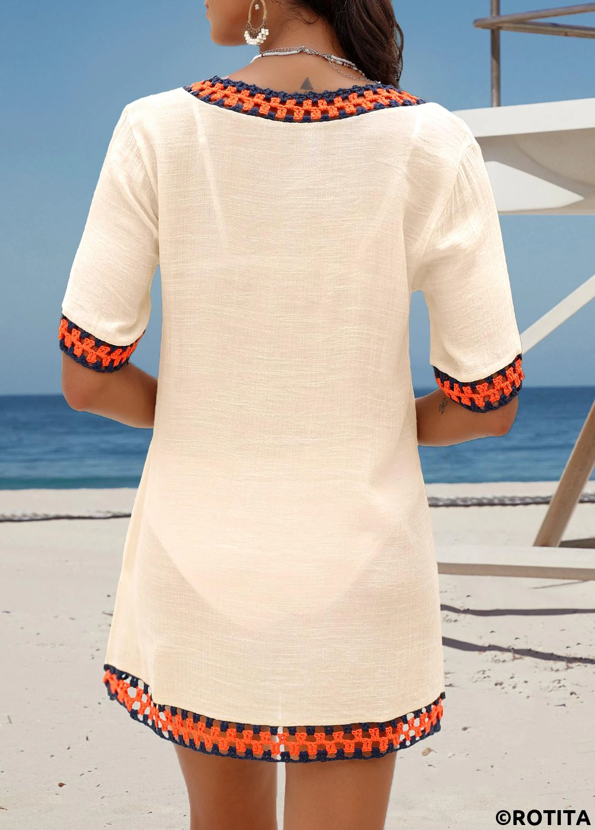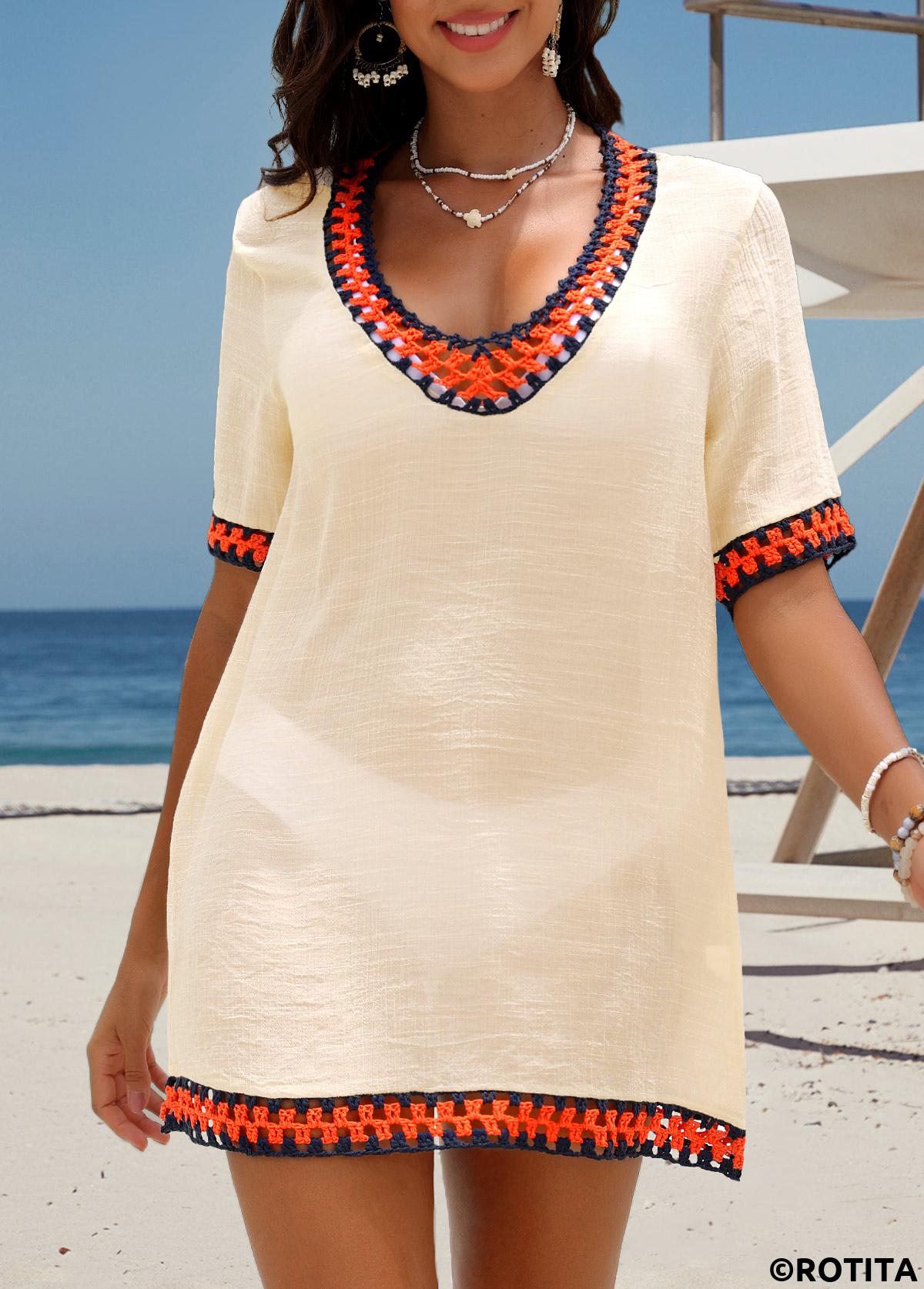 Maison > Maillots de bain > Des dissimulations/ Cache-maillot beige à manches courtes et col en V