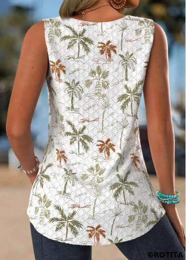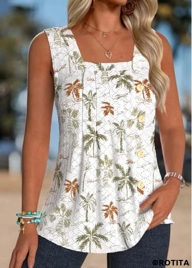 Nouvelle dans Débardeur blanc sans manches à imprimé de plantes tropicales Rotita couvrant le ventre