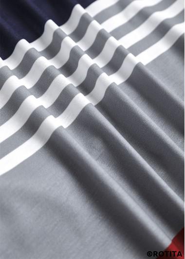 Heim > Oberteile > Blusen/ Rotita-Bluse mit Ösenstreifen marineblauem Hemdkragen und 3/4-Ärmeln