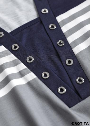 Rotita-Bluse mit Ösenstreifen marineblauem Hemdkragen und 3/4-Ärmeln