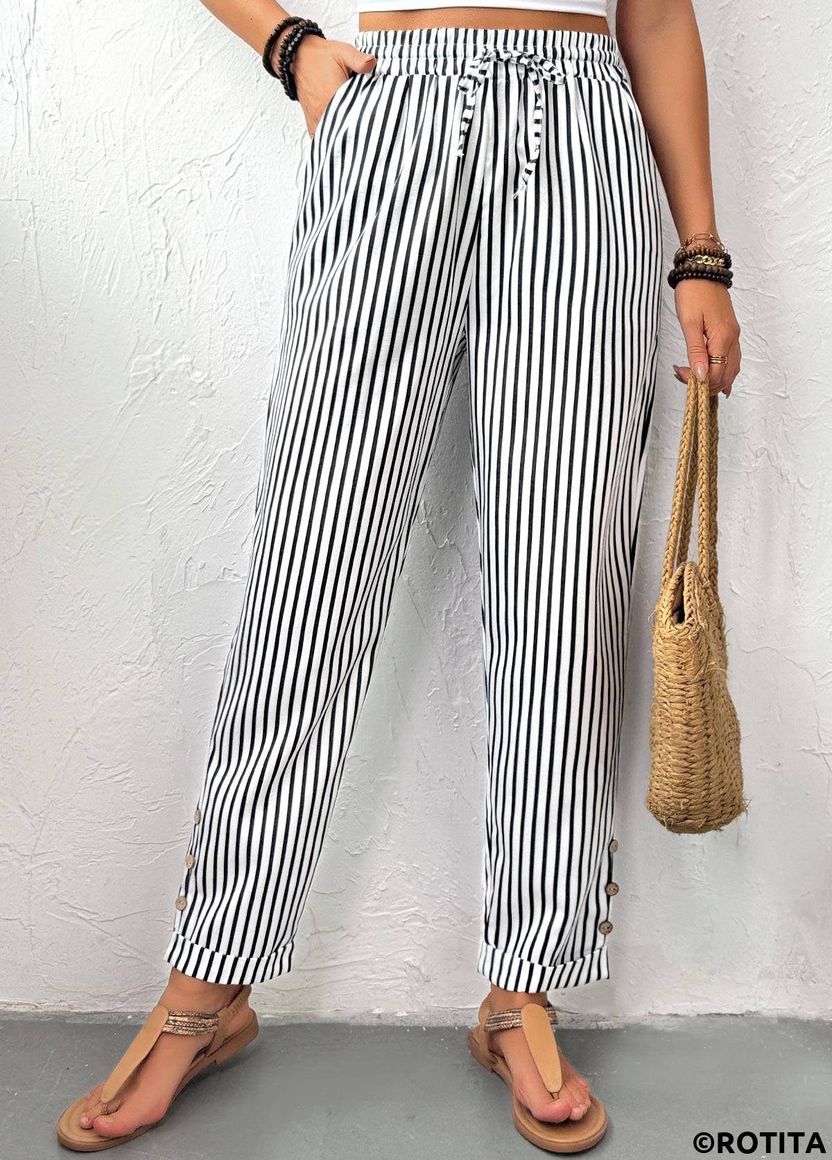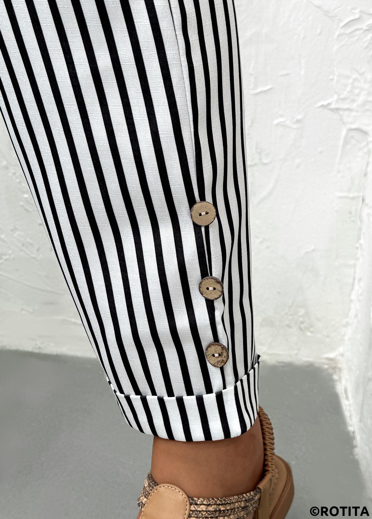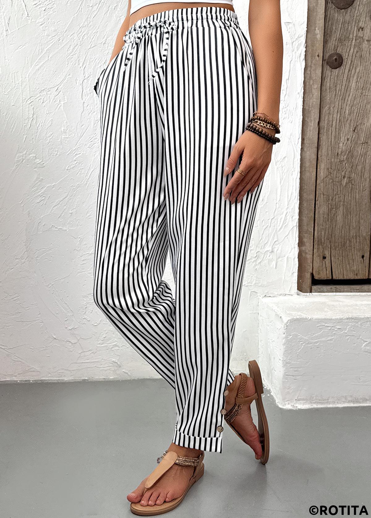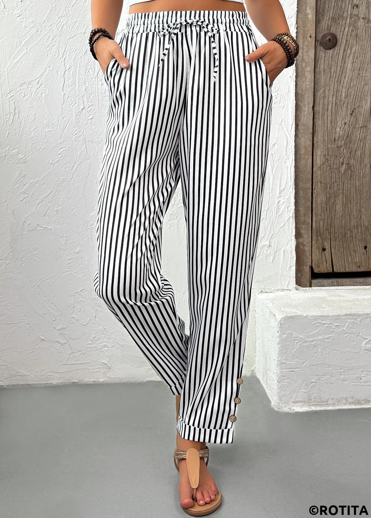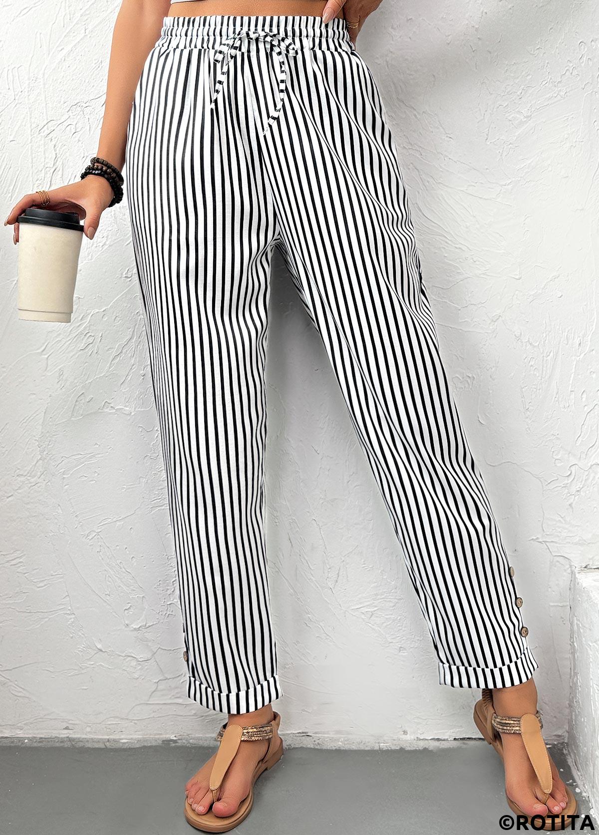 Heim > Unterteile > Hose/ Schwarze Hose mit geradem Bein und elastischer Taille und Taschen