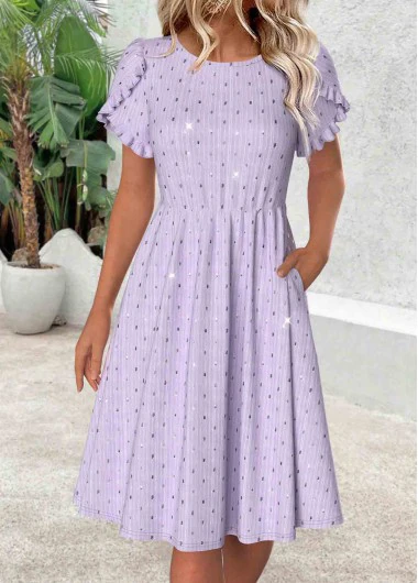 Verkauf Rotita hellviolettes Kurzarmkleid mit Rundhalsausschnitt