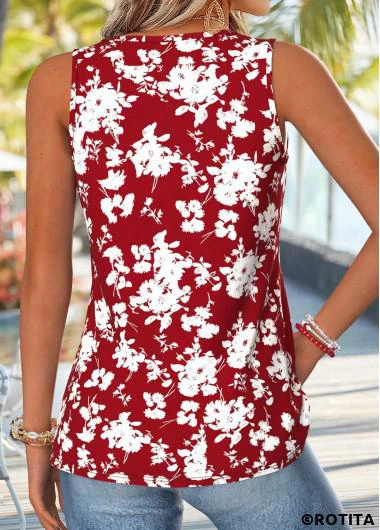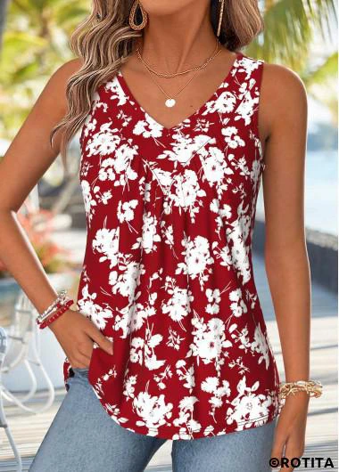 Heim > Oberteile > Tanktops und Camis/ Rotita Patchwork-Tanktop mit Blumenmuster rotes ärmelloses Top mit V-Ausschnitt