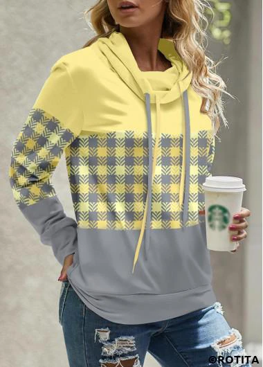 > Übergröße > Plus-Size-Tops/ Rotita Patchwork-Sweatshirt in Hellgelb mit Karomuster in Übergröße