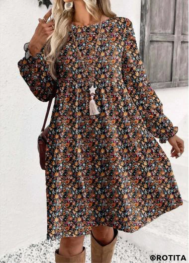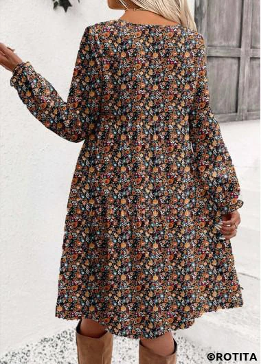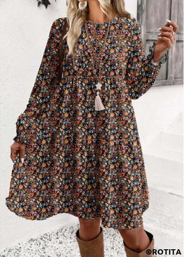 Verkauf Rotita – Kurzes mehrfarbiges Kleid mit Blumenmuster und Rundhalsausschnitt