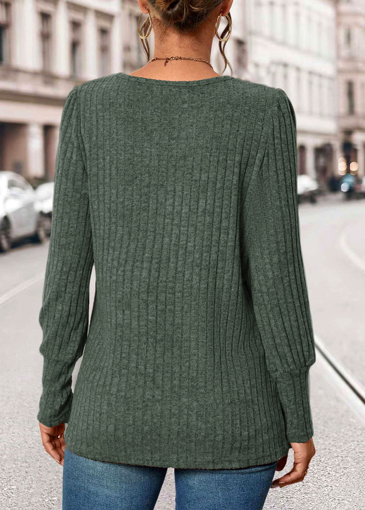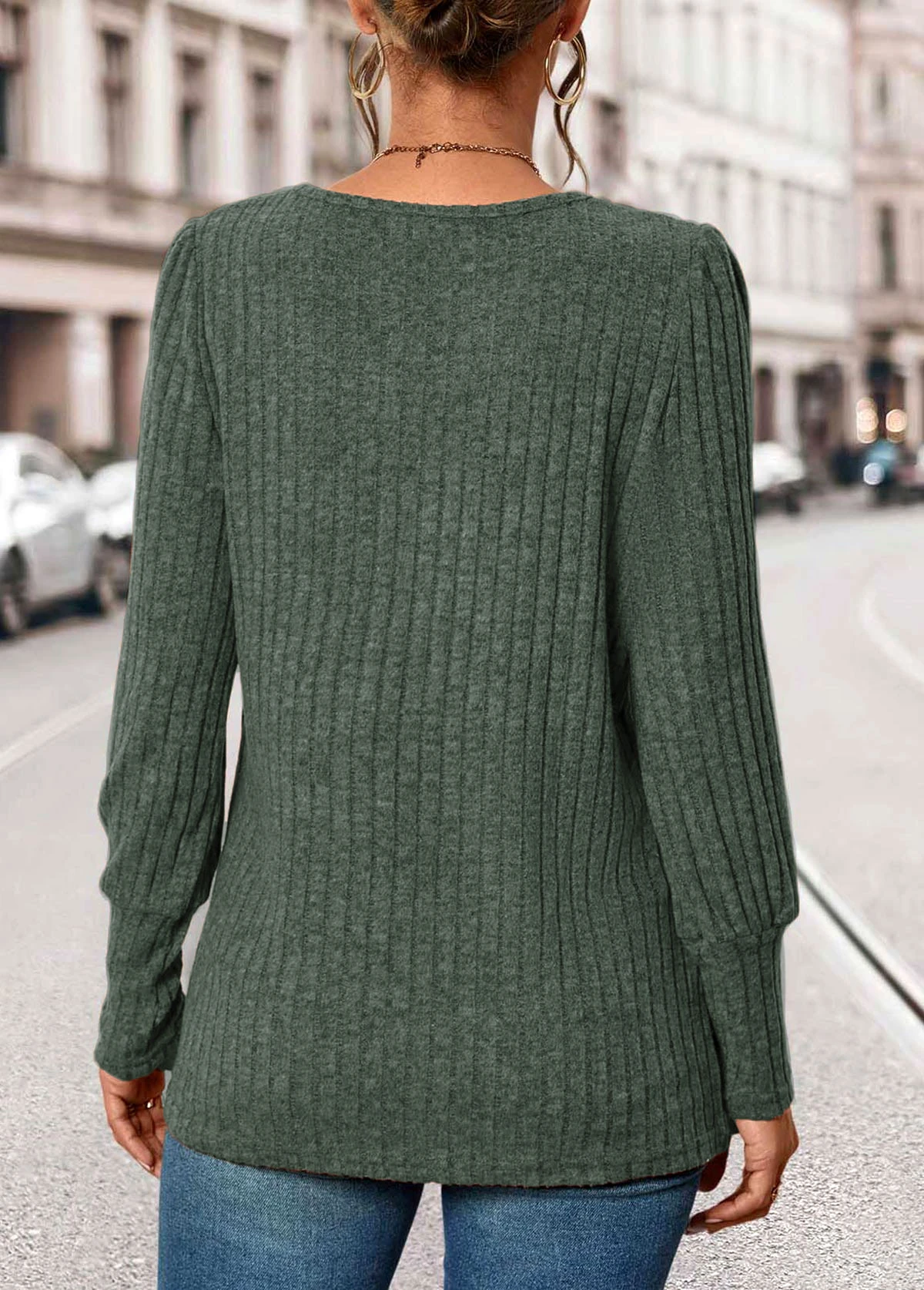 Heim > Oberteile > T-Shirts/ Olivgrünes T-Shirt mit langen Ärmeln und quadratischem Ausschnitt von Rotita Button