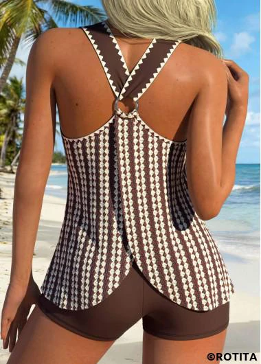 Heim > Bademode > Tankinis > Tankini-Sets/ Rotita Tankini-Set mit dunklem Kaffeering und kreisförmigem Ring mittelhoch geschnitten